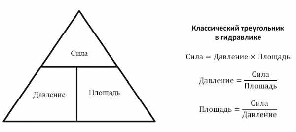 Физическая величина давление равна силе приходящейся на единицу площади. Вообще отношение силы, давления и площади можно выразить в виде вот такого мнемонического треугольника как на рисунке ниже.