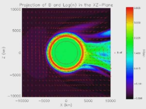 По той же причине у Титана, крупнейшего спутника Сатурна, наблюдается газовых хвост как следствие стока атмосферы.