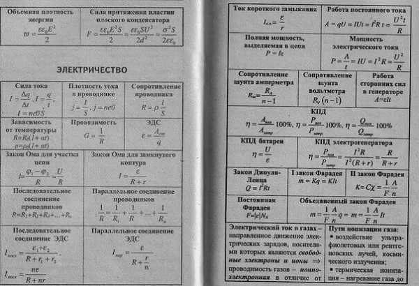 шпаргалка физика