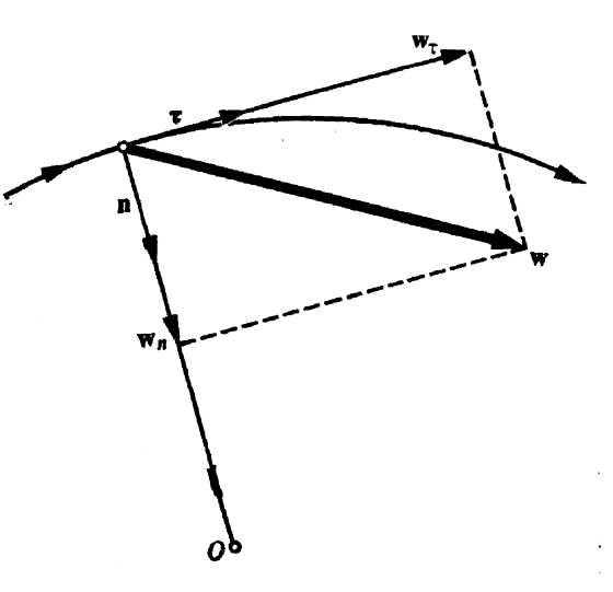 1. Истинно, что любой вектор (в том числе вектор силы) может быть разложен по крайней мере на две составляющие. Но это разложение совершенно произвольно и не значит, что такие компоненты существуют в действительности. Для подтверждения их реальности должна привлекаться дополнительная информация, в любом случае не взятая из анализа формы траектории. Например, по рисунку 2 невозможно определить природу силы F, так же как невозможно утверждать, что она сама является или не является суммой сил разной природы. Можно лишь утверждать, что на изображённом участке она постоянна, и что для формирования наблюдаемой в данной СО криволинейности траектории служит вполне определённая в данной СО центростремительная часть этой силы. Зная лишь траекторию материальной точки в какой-либо инерциальной системе отсчёта и её скорость в каждый момент времени,