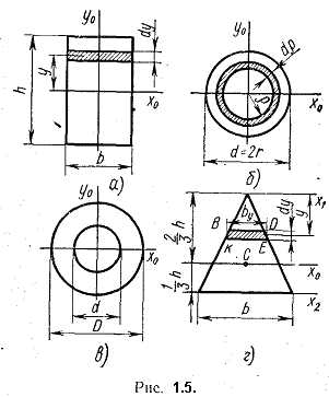1. Прямоугольник (рис. 1.5,а). Вычислим момент инерции сечения относительно оси Х0, проходящей через центр тяжести параллельно основанию.