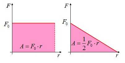 Правило определения работы по графику зависимости F(r): работа численно равна площади фигуры под графиком зависимости силы от перемещения.