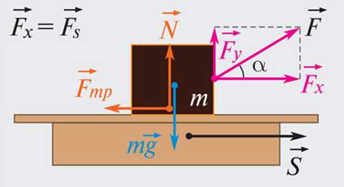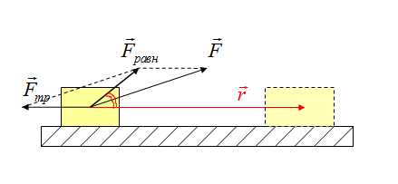 Работа постоянной силы, направленной под углом к перемещению, формула