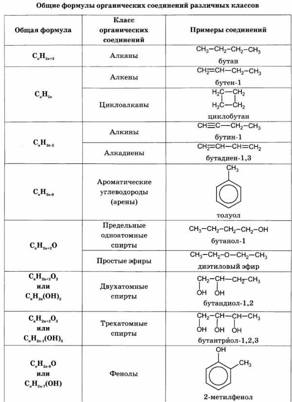 2. Повторение общих формул органических веществ.