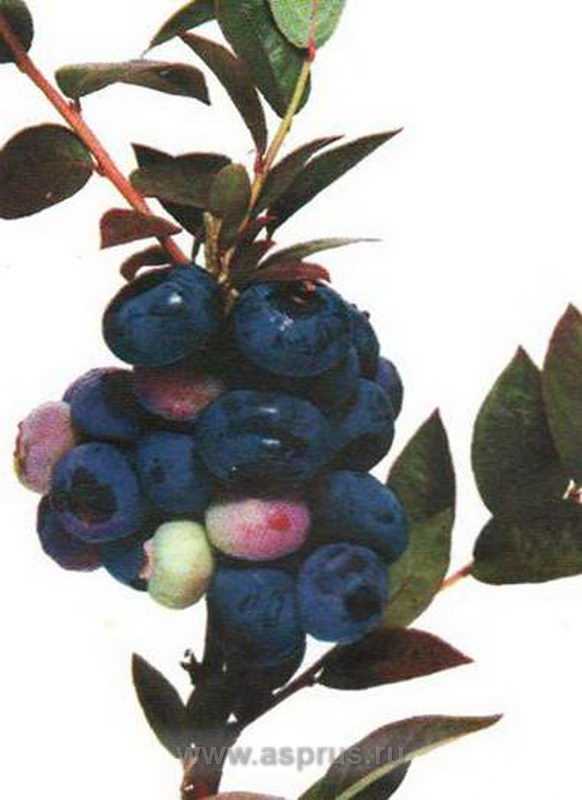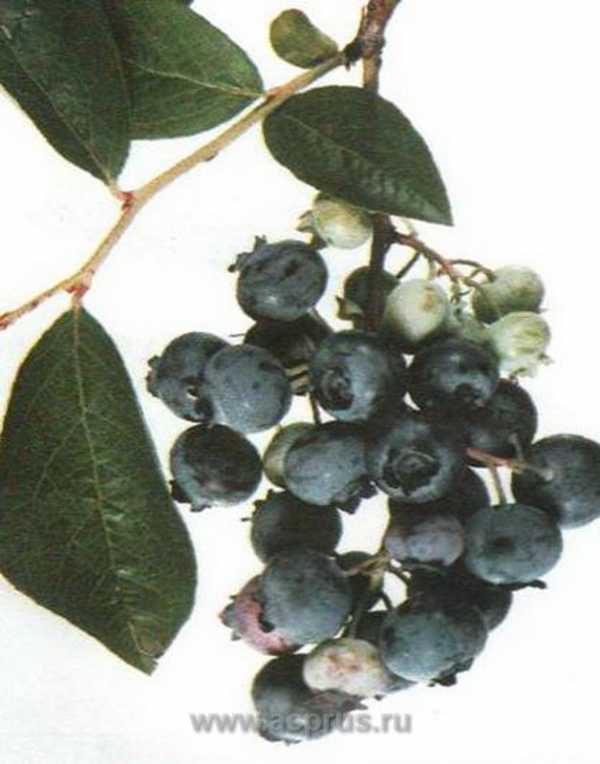 Сорт — BerkeleyОчень урожайный сорт, умеренно морозостойкий. Характеризуется высокими темпами роста, имеет сферическую крону. Листья крупные, эллиптические, интенсивно зеленого цвета. Плодоножки длинные, довольно толстые. Ягоды покрыты очень интенсивным восковым налетом, что придает им весьма привлекательный внешний вид. Мякоть ягод плотная, кисловатая на вкус.