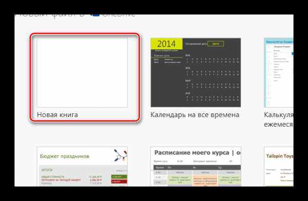- Выберите веб-приложение «Excel» — «Новая книга».