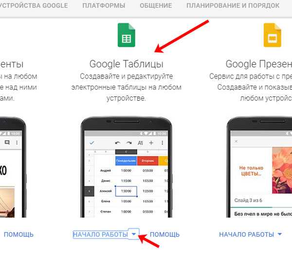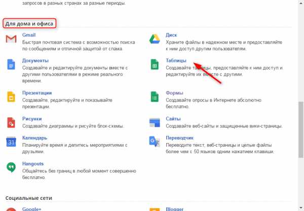 На главной странице Google нажмите пиктограмму с квадратиками, щелкните на «Еще» и «Другие сервисы Google». Выберите «Таблицы» в разделе «Для дома и офиса». Чтобы быстро перейти к созданию таблиц, воспользуйтесь ссылкой.