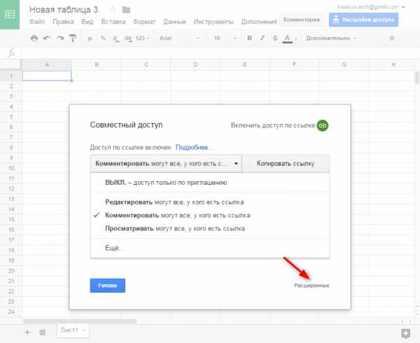 В выпадающем списке выберите, что могут делать пользователи, которые получат ссылку на таблицу: просматривать, редактировать или комментировать. Нажмите «Готово», чтобы изменения вступили в силу.