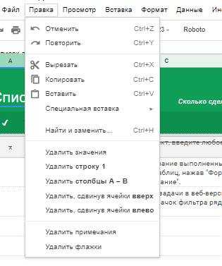 Вкладка «Правка» отвечает непосредственно за навигацию по документу и некоторые действия с таблицей. Пункты «Отменить» и «Повторить» говорят сами за себя. Следующие инструменты позволяют вырезать часть информации, копировать или же вставлять. Нужно не упустить из виду «Специальную вставку», которая открывает новые возможности. Далее можно найти строку для навигации по документу благодаря ключевым словам. За этим следуют инструменты из серии «Удалить».