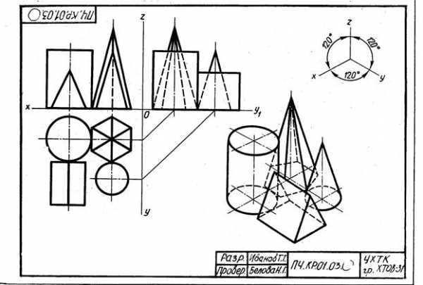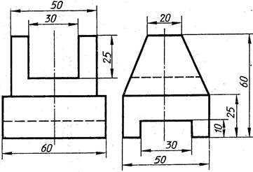 Врассмотренном выше примере с опорой работа над чертежом началась с технического рисунка. Но если условие будет задано двумя проекциями, то это не меняет сути дела. Методика работы над чертежом остаётся прежней. Модели геометрических тел уже были представлены в разделе