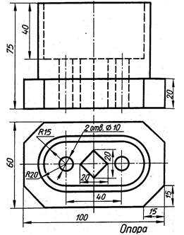 На этом простановка размеров закончена. Итоговый чертёж детали представляет собой совокупность изображений рис. 103 и рис. 102, б.