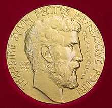 Изображение Архимеда на золотой медали Филдса — высшей награде среди математиков. Надпись на латыни: «Transire suum pectus mundoque potiri» — «Превзойти свою человеческую ограниченность и покорить Вселенную». Фото Стефана Захова.