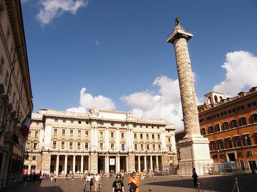 Далее на Piazza Colonna, возвышается колонна Марка Аврелия, установленная в 180 году нашей эры. Ее высота почти 42 метра, правда, три из которых после реставрации в 1589 году оказались под землей. На Piazza Montecitorio перед зданием Парламента, спроектированного Бернини установлен обелиск, привезенный в Рим императором Августом из Гелиополиса. Колонна использовалась в качестве стрелки для солнечных часов на Campo Marzio. Так, бродя по римским улочкам, вы окажетесь на Piazza della Rotunda перед единственным в целости сохранившемся до наших дней памятником античности – Пантеоном. Первые упоминания о строительстве храма, свидетельства незыблемости Римской империи, датируются 27 годом нашей эры. В 609 году Пантеон переосвятили в храм всех мучеников.