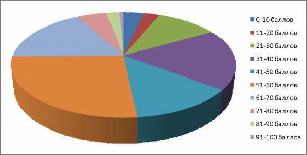 Фактически весь 11-й класс (а иногда – и дольше) готовятся школьники к выпускному экзамену, который для некоторых из них является и вступительным. И каков итог? Большинство выпускников написали ЕГЭ на 51-60 баллов (26%), весьма заметен процент «двоек» (до 20 баллов, это около 6,2% или почти 50000 человек!), и только 0,7% всех учащихся оказались способны сдать ЕГЭ на 91-100 баллов! Да и в целом, сдать на достойные баллы (более 70-ти), необходимые для поступления в ведущие вузы страны, смогли лишь 8% всех ребят, окончивших 11 классов средней школы.