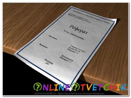 В центре страницы следует писать наименование факультета. Обычно наименование факультета пишется наверху. Далее отступаем вниз и пишем слово «реферат» большими буквами. Ниже указываем слова «по дисциплине» и наименование предмета, а на следующей строчке слово «тема» и название выполненной работы. Отступаем вниз и справа пишем реквизиты студента и его преподавателя, в том числе отметку за реферат и оставляем строку для подписей. В нижней части листа по центру указывается наименование своего города, а внизу — год сдачи своей работы.