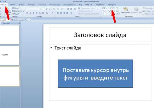 Текст на слайде может быть добавлен и на фигуры, такие как квадраты, прямоугольники, окружности, контуры и фигурные стрелки.