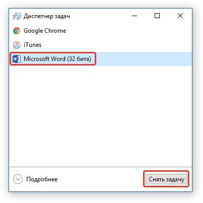 Примечание: Прежде, чем приступить к поиску временных файлов, обязательно закройте все запущенные окна Microsoft Office. При необходимости, можно снять задачу через «Диспетчер» (вызывается комбинацией клавиш «CTRL+SHIFT+ESC»).