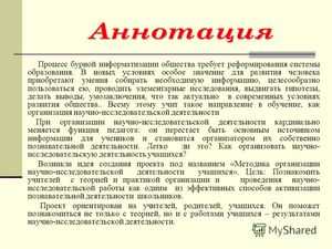 Такой может быть аннотация к научной статье, пример которой мы только что привели. Теперь давайте еще рассмотрим вариант аннотации к публикации по педагогике, которая может несколько отличаться от научного.