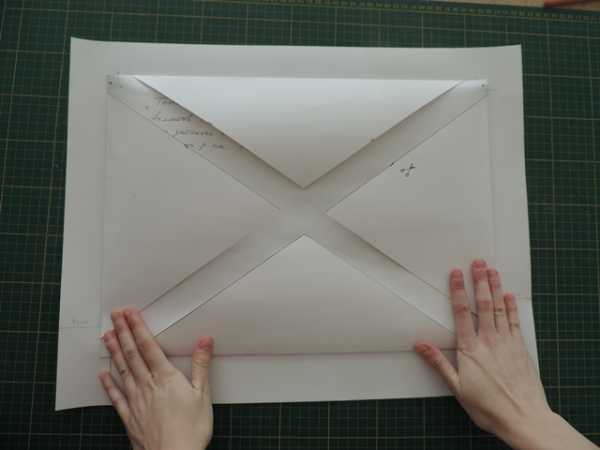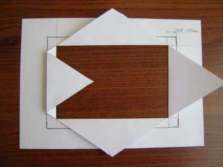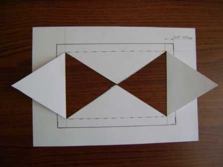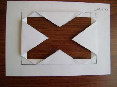 И прорежьте их канцелярским ножем или ножницами. Важно! Только диагонали меньшего прямоугольника!