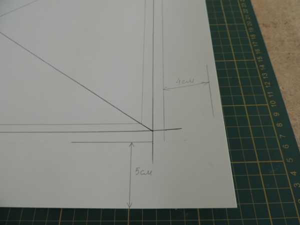 - Боковые и верхние края рамки. Откладываем от края линии 1 см и далее 4 см как изображено на рисунке.