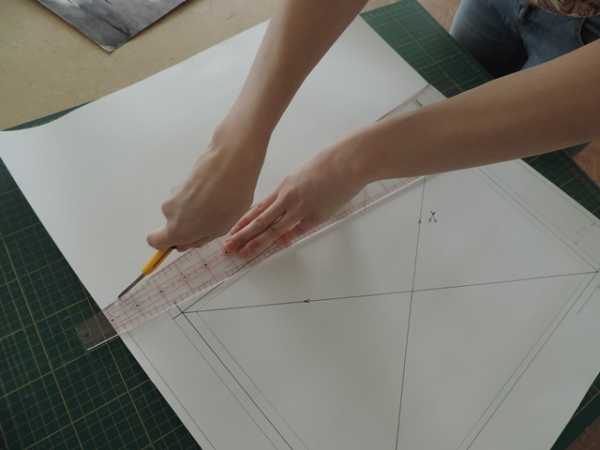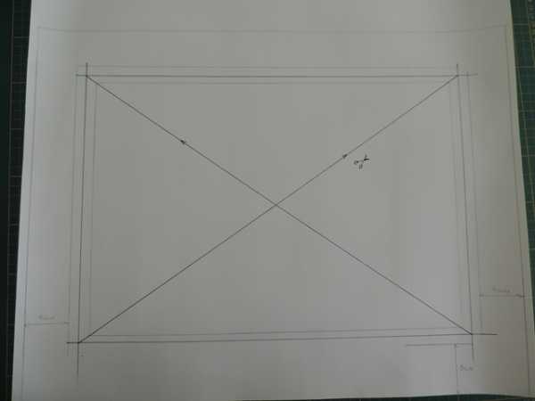 3. Далее. Начертив прямоугольник расчерчиваем крест накрест две линии. Строго из угла в угол (как показано на верхнем снимке).