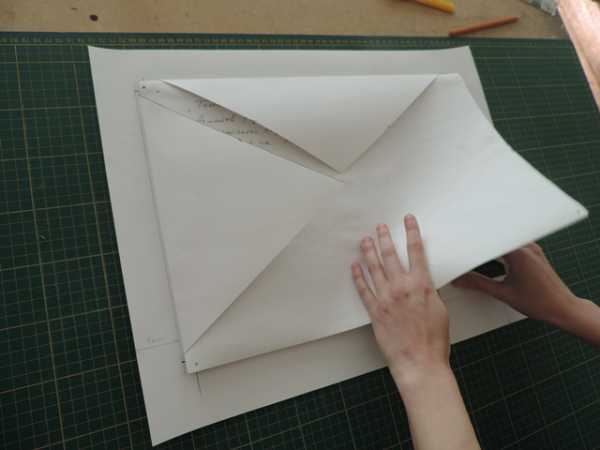 Получившиеся углы сгибаем по внешней линии так, чтобы все прочерченные линии оставались внутри сгиба.