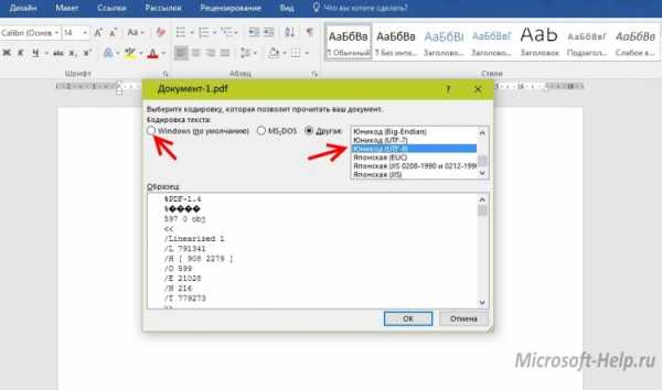 Поскольку преобразование – не является 100% работоспособной функцией, в процессе могут возникнуть проблемы. В лучше случае, вас лишь предупредят, что готовая структура, вероятнее всего, не будет совпадать с исходным файлом, в худшем – Word не сможет определить кодировку и файл вообще не распознается. Однако на данном этапе у вас есть возможность выбрать кодировку вручную. Лучше всего отдать предпочтение стандартной Windows или Юникод (UTF-8), которую можно найти в списке в правой части диалогового окна.