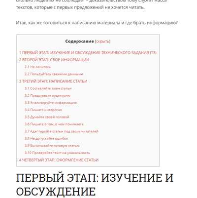 Когда план и структура статьи готовы — пришла пора заполнять подразделы контентом.