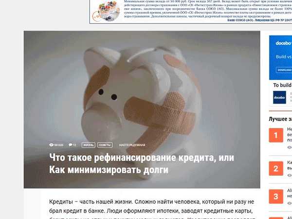 Анализ я всегда начинаю с изучения поисковой выдачи по интересующему меня запросу. Допустим, я пишу статью на тему “Что такое рефинансирование кредита”.