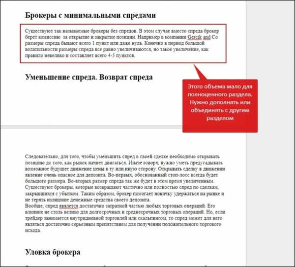 То, что автор расставил заголовки, не сделало статью структурированной. На рисунке выше есть заголовок Уменьшение спреда.