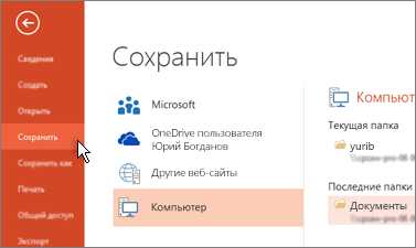 Примечание: Если вы часто сохраняете файлы в определенную папку, можно закрепить путь к ней, чтобы эта папка всегда была под рукой (как показано ниже).