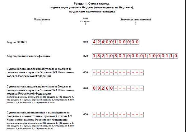 - Раздел 1 с суммами налога, подлежащими уплате в бюджет,