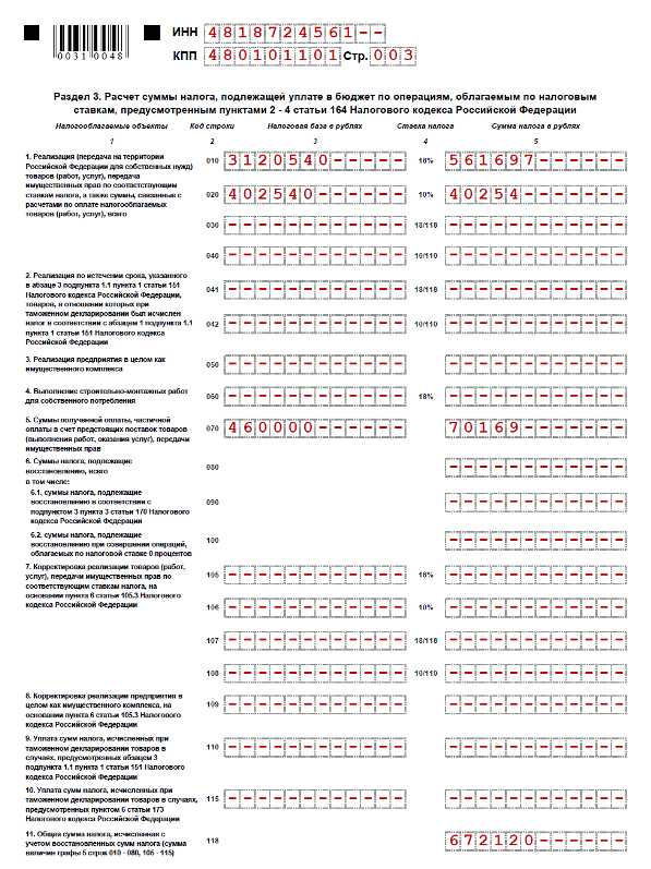Декларация по НДС за 3 квартал 2018 года: пример заполнения