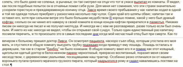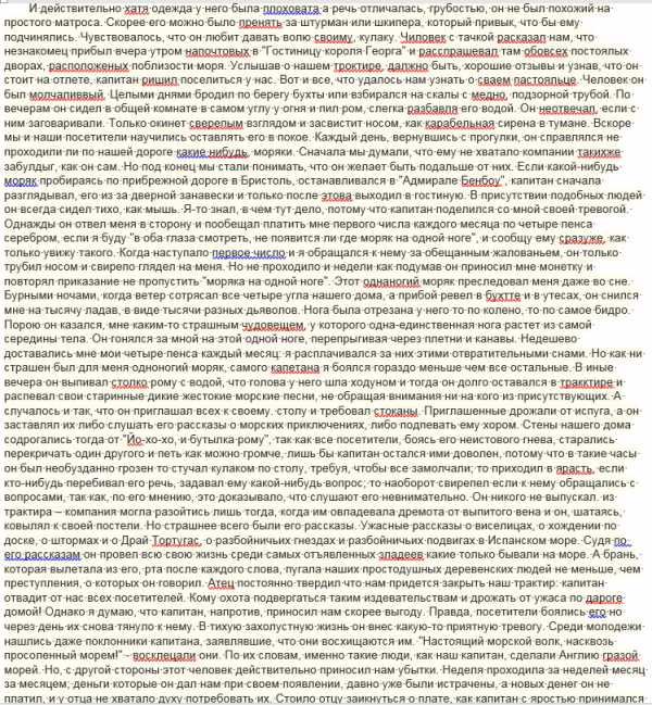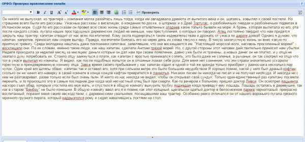 От кол-ва орфографических ляпов, найденных этим сервисом, нужно отнять 4 слова: Тортугас, Бенбоу (2 раза), Ливси. Эти слова не учитывались за ошибки, так как были в ориг. тексте.