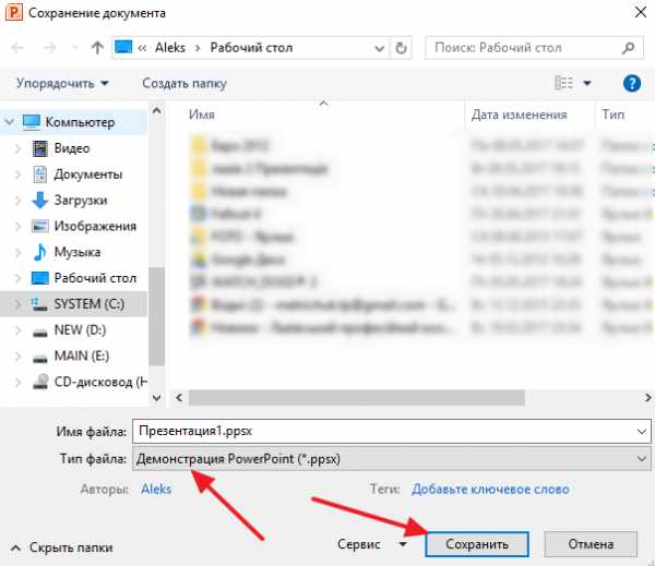 Вот на этом все.Нажимая на клавиши Shift+F5 мы просматриваем всю нашу презентацию. Затем нажимаете на кнопку в верхнем углу этой программы нажимаем сохранить, вас перекидывает на ваш компьютер и вы пишите название вашего файла и нажимаете — Сохранить