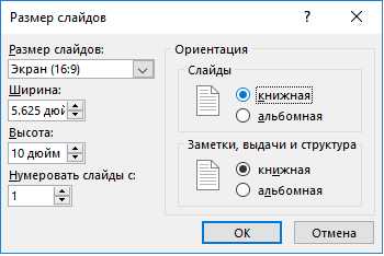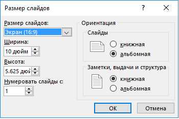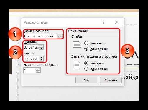 - Справа можно выбрать ориентацию для слайдов и заметок.