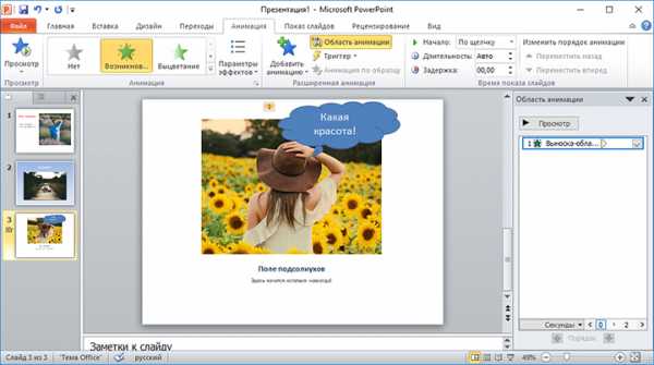 Шаг 4. Украсьте слайды фигурами с текстом, добавьте анимацию. Программа предлагает несколько простых эффектов выделения, появления и ухода элементов слайда. Найти их можно в соответствующей вкладке. Также можно вставить музыку в презентацию.