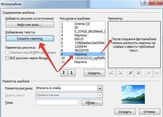 6. Если в слайд-фильме будет несколько разделов, создаем специальный слайд с надписью. Пока это пустой слайд, но после создания фотоальбома на нем можно разместить требуемый текст: