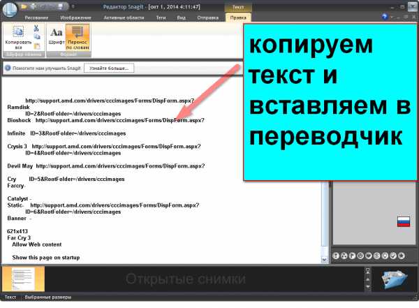 После чего выбираем, не копируемый обычным способом, текст и исходя с выше указанных настроек извлекаем его. Автоматически откроется редактор «Snagit», от куда и скопируем текст.