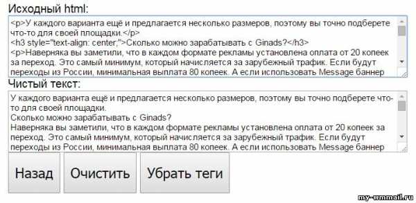 Просто нажмите «Убрать теги» и в нижней форме откроется очищенный текст. Таким способом можно скопировать данные с любого сайта, ведь если буквы отображаются на странице, значит они должны быть и в коде.