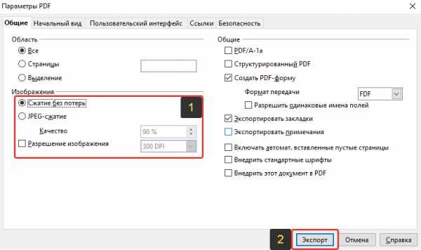 Если документ маленький, из нескольких страниц, то лучше ставьте «Сжатие без потерь», чтобы получить документ PDF наилучшего качества. А если документ большой, там много всяких картинок, то поставьте JPEG-сжатие с качеством 90% и посмотрите, какой получится в итоге размер документа и его качества, устраивает ли вас то и другое или нет.