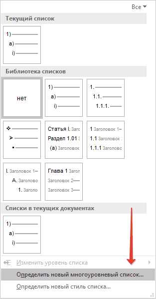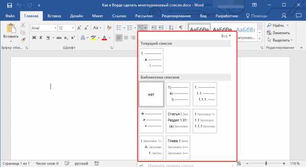 ΠΠ΅Π»Π°ΡΡ ΠΈΡ Π½Π΅ ΡΠ»ΠΎΠΆΠ½ΠΎ. ΠΠΎΠ·ΡΠΌΠ΅ΠΌ Π΄Π»Ρ ΠΏΡΠΈΠΌΠ΅ΡΠ° ΡΠΏΠΈΡΠΎΠΊ Ρ ΡΠ°Π·Π΄Π΅Π»Π°ΠΌΠΈ ΠΈ ΠΏΠΎΠ΄ΠΏΡΠ½ΠΊΡΠ°ΠΌΠΈ. ΠΡΠ΄Π΅Π»ΠΈΡΠ΅ Π΅Π³ΠΎ ΠΈ Π½Π° Π²ΠΊΠ»Π°Π΄ΠΊΠ΅ Β«ΠΠ»Π°Π²Π½Π°ΡΒ» Π½Π°ΠΆΠΌΠΈΡΠ΅ ΠΏΠΎ ΡΡΡΠ΅Π»ΠΊΠ΅ ΡΡΠ΄ΠΎΠΌ Ρ ΠΊΠ½ΠΎΠΏΠΊΠΎΠΉ Β«ΠΠ½ΠΎΠ³ΠΎΡΡΠΎΠ²Π½Π΅Π²ΡΠΉ ΡΠΏΠΈΡΠΎΠΊΒ». Π Π±ΠΈΠ±Π»ΠΈΠΎΡΠ΅ΠΊΠ΅ ΠΌΠΎΠΆΠ½ΠΎ Π²ΡΠ±ΡΠ°ΡΡ ΠΎΠ΄ΠΈΠ½ ΠΈΠ· Π²Π°ΡΠΈΠ°Π½ΡΠΎΠ² Π½ΡΠΌΠ΅ΡΠ°ΡΠΈΠΈ. ΠΡΠ»ΠΈ Π½ΠΈΡΠ΅Π³ΠΎ Π½Π΅ ΠΏΠΎΠ΄ΠΎΠΉΠ΄Π΅Ρ, Π½Π°ΠΆΠΌΠΈΡΠ΅ Π½Π° Β«ΠΠΏΡΠ΅Π΄Π΅Π»ΠΈΡΡ Π½ΠΎΠ²ΡΠΉ ΠΌΠ½ΠΎΠ³ΠΎΡΡΠΎΠ²Π½Π΅Π²ΡΠΉ ΡΠΏΠΈΡΠΎΠΊΒ».