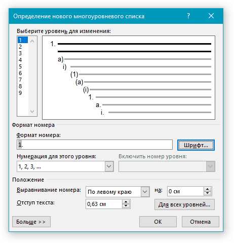 Π ΠΎΡΠΊΡΡΠ²ΡΠ΅ΠΌΡΡ ΠΎΠΊΠ½Π΅ Π²Π½ΠΈΠ·Ρ ΡΠ»Π΅Π²Π° ΠΊΠ»ΠΈΠΊΠ½ΠΈΡΠ΅ Β«ΠΠΎΠ»ΡΡΠ΅Β», ΡΡΠΎΠ±Ρ ΡΠ°Π·Π²Π΅ΡΠ½ΡΡΡ Π²ΡΠ΅ ΠΏΠ°ΡΠ°ΠΌΠ΅ΡΡΡ. ΠΠ²Π΅ΡΡ Ρ ΡΠ»Π΅Π²Π° Π²ΡΠ±ΠΈΡΠ°ΠΉΡΠ΅ Π½ΡΠΆΠ½ΡΠΉ ΡΡΠΎΠ²Π΅Π½Ρ ΠΈ Π² ΠΎΡΠ½ΠΎΠ²Π½ΠΎΠΌ ΠΎΠΊΠ½Π΅ ΠΌΠ΅Π½ΡΠΉΡΠ΅ Π΄Π»Ρ Π½Π΅Π³ΠΎ ΠΏΠ°ΡΠ°ΠΌΠ΅ΡΡΡ. ΠΠ°ΠΏΡΠΈΠΌΠ΅Ρ, Β«Π€ΠΎΡΠΌΠ°Ρ Π½ΠΎΠΌΠ΅ΡΠ°Β» ΠΌΠΎΠΆΠ½ΠΎ Π²ΡΠ±ΡΠ°ΡΡ Β«1.Β» ΠΈΠ»ΠΈ Β«1)Β». ΠΠ·ΠΌΠ΅Π½ΠΈΡΡ Π²ΠΈΠ΄ Π½ΡΠΌΠ΅ΡΠ°ΡΠΈΠΈ Β«1, 2, 3β¦Β» ΠΈΠ»ΠΈ Β«Π, Π, Πβ¦Β». ΠΠΎΠΆΠ½ΠΎ Β«Π‘Π²ΡΠ·Π°ΡΡ ΡΡΠΎΠ²Π΅Π½Ρ ΡΠΎ ΡΡΠΈΠ»Π΅ΠΌΒ», Π² ΡΡΠΎΠΌ ΡΠ»ΡΡΠ°Π΅ Π΄Π»Ρ ΡΠ΅ΠΊΡΡΠ° Π½Π° Π²ΡΠ±ΡΠ°Π½Π½ΠΎΠΌ ΡΡΠΎΠ²Π½Π΅ Π±ΡΠ΄Π΅Ρ ΠΏΡΠΈΠΌΠ΅Π½Π΅Π½ ΡΠΆΠ΅ Π³ΠΎΡΠΎΠ²ΡΠΉ ΡΡΠΈΠ»Ρ ΠΎΡΠΎΡΠΌΠ»Π΅Π½ΠΈΡ (ΠΏΡΠΈΠ³ΠΎΠ΄ΠΈΡΡΡ, Π΅ΡΠ»ΠΈ ΠΡ ΠΏΠ»Π°Π½ΠΈΡΡΠ΅ΡΠ΅ ΡΠ΄Π΅Π»Π°ΡΡ ΡΠΎΠ΄Π΅ΡΠΆΠ°Π½ΠΈΠ΅ Π² ΠΠΎΡΠ΄Π΅), ΠΈΠ»ΠΈ Π½Π°ΡΠ°ΡΡ Π½ΡΠΌΠ΅ΡΠΎΠ²Π°ΡΡ Π½Π΅ Ρ Β«1Β» ΠΈΠ»ΠΈ Β«ΠΒ», Π° Π»ΡΠ±ΠΎΠΉ Π΄ΡΡΠ³ΠΎΠΉ Π±ΡΠΊΠ²Ρ/ΡΠΈΡΡΡ. ΠΠΎΠ³Π΄Π° Π²ΡΠ΅ Π²ΡΠ±Π΅ΡΠΈΡΠ΅, ΠΆΠΌΠΈΡΠ΅ Β«ΠΠΒ».
