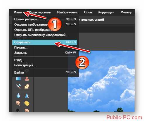 - Чтобы экспортировать обработанную фотографию, перейдите в «Файл» — «Сохранить» или же нажмите комбинацию клавиш «Ctrl + S».