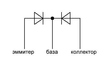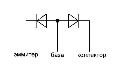 Один p-n переход между базой и коллектором образует один диод, второй p-n переход между базой и эмиттером образует второй диод.
