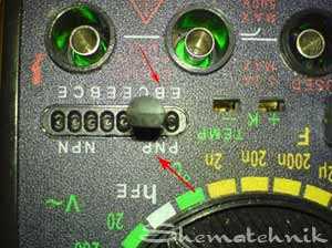У таких мультиметров проверочные гнезда состоят из двух отделов p-n-p и n-p-n, а кроме того каждый отдел имеет три комбинации как можно вставить туда транзистор, то есть вместе не более 6 комбинаций, и только лишь одна правильная которая должна показать коэффициент усиления транзистора, за условий что он исправен.