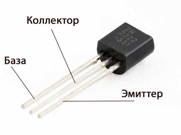 Каждый вывод имеет свое название: коллектор, эмиттер и база. Первые два вывода p-n переходами соединяются в базе.