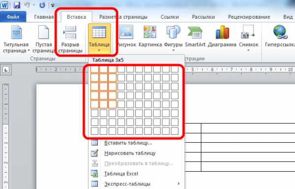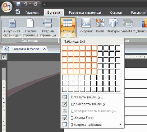 Для создания таблиц бо́льшого размера лучше всего воспользоваться инструментом «Вставить таблицу», который позволяет задать нужные параметры. Помимо этого, во вкладке «Вставить» есть возможность добавить таблицу Excel или экспресс-таблицу.