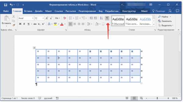 3. В группе «Таблица» нажмите кнопку «Отобразить сетку».