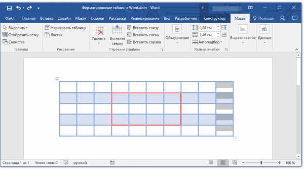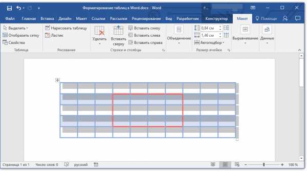 1. Перейдите во вкладку «Макет» (основной раздел «Работа с таблицами»)